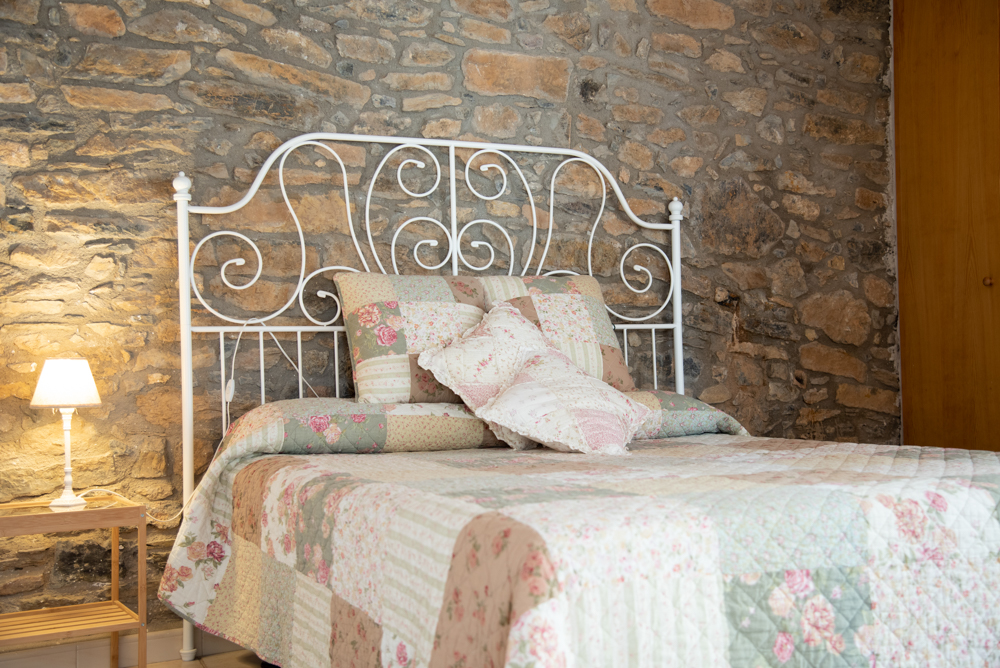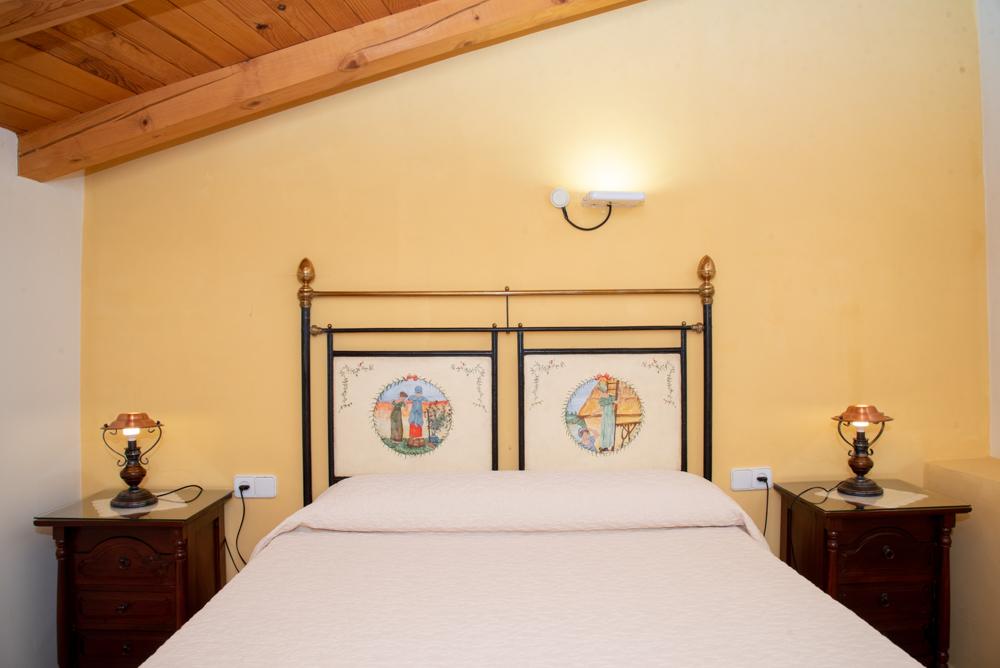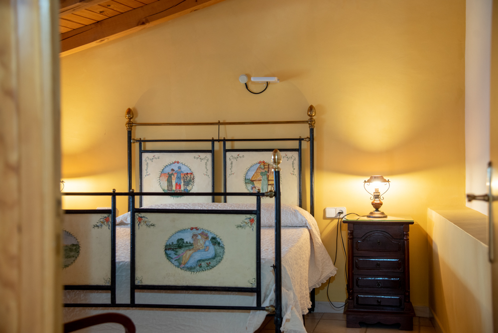 Habitació de matrimoni que ret homenatge a l’any de construcció de la casa. Ideal per a parelles que busquen una experiència autèntica i plena d’història.