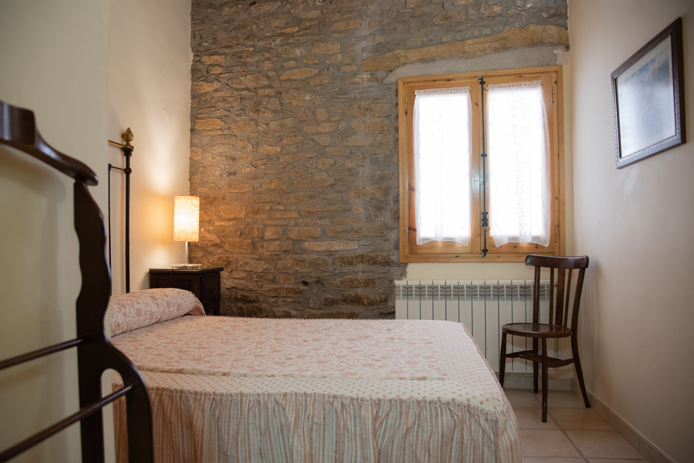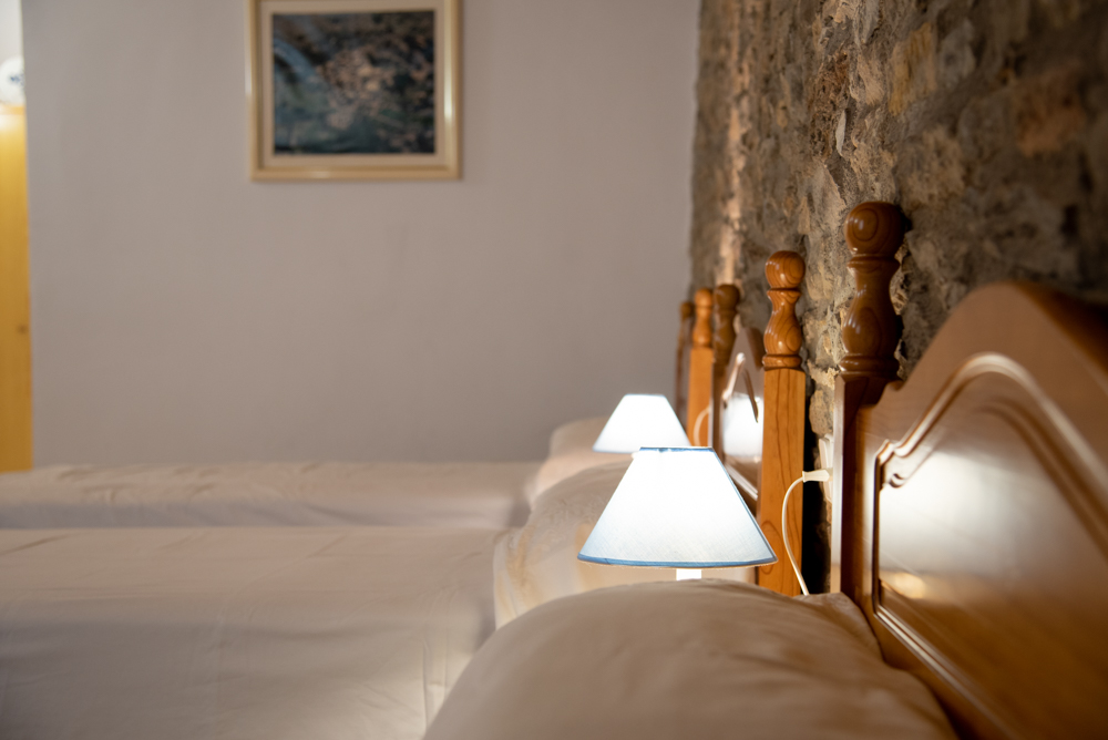 Habitació doble que recorda les antigues cabanes dels pastors de la regió, amb decoració rústica i acollidora.